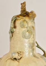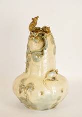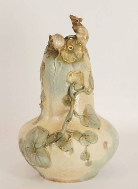 Large Art Nouveau Gourd-Shaped Vase with Mice