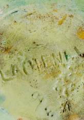 Stoneware, glazed and incised with a stylized vegetal décor.
