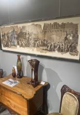 At the center, Scipio—helmeted and composed—dominates the scene from atop a monumental chariot drawn by elephants captured from the enemy, spectacular trophies seized from the army of Hannibal Barca. The presence of these rare and exotic animals reinforces the symbolic weight of Rome’s victory over Carthage. Around him, soldiers, captives, priests, and citizens form an animated procession, punctuated by expressive gestures and poses inspired by classical antiquity.