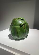 This covered ceramic vessel is a striking example of the distinctive aesthetic of François-Rupert Carabin, a major figure of the Art Nouveau movement, whose work boldly explores the relationship between the human body and the organic world. Fully modelled, the piece is enlivened by a high-relief decoration depicting a nude woman entwined around a voluminous gourd, forming a sensuous interlacing of full, continuous forms.